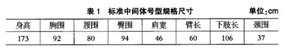 結(jié)合服裝號型標(biāo)準(zhǔn)和GB/13640—1992勞動防護服號型,得到中間體規(guī)格尺寸如表1所示。