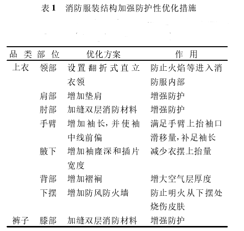 基于防護(hù)服裝功能設(shè)計(jì)模式,消防服結(jié)構(gòu)優(yōu)化的目的主要包括加強(qiáng)防護(hù)性能和提升工效性能兩方面。