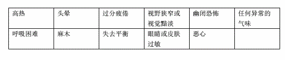 注意:穿著防化服時(shí),如果出現(xiàn)以下描述癥狀,請立即脫下防化服: