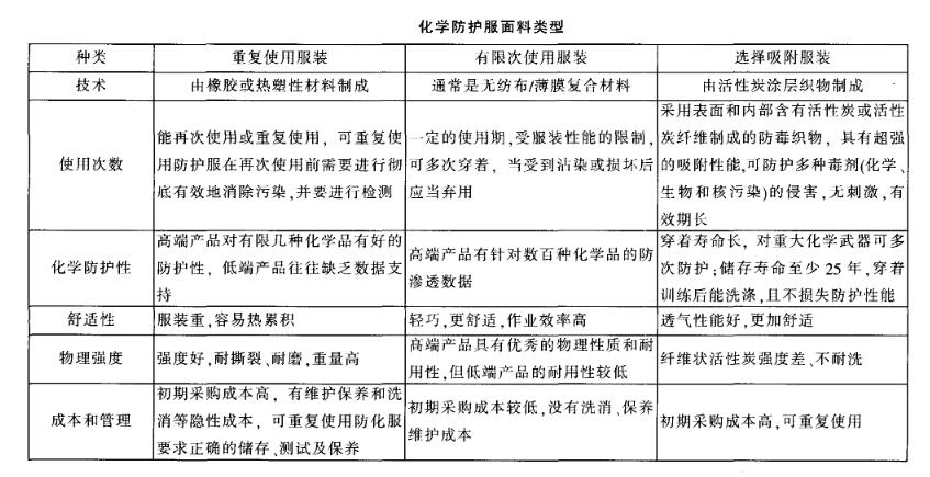 防化服、化學(xué)防護(hù)服的面料發(fā)展及現(xiàn)有類型