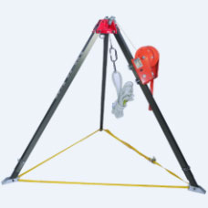 用于高處、懸崖及井下等救援作業(yè)。金屬框架,備有手搖式絞盤,手動(dòng)絞盤額定提升重量1600N,手搖力175N,繩索長(zhǎng)度30米,質(zhì)量27.4kg。符合《救援三角架試驗(yàn)大綱》標(biāo)準(zhǔn)。