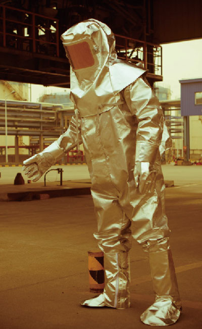●特有的多層隔熱面料結(jié)構(gòu),提供更佳隔熱防護(hù)——外層復(fù)合纖維鍍鋁面料+襯里為三層結(jié)構(gòu),鋁箔反射層+玻璃纖維絕熱層+氯丁橡膠隔濕層。
