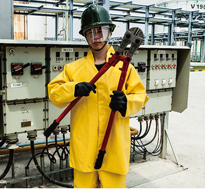 ●電絕緣服主體包括三層材料,外層采用防化耐電尼龍涂履PVC材料制成,中層采用防靜電絕緣材料,內(nèi)層使用錦絲涂覆織物材料。其他輔料包括尼龍織帶、防靜電扣和防靜電插扣等。