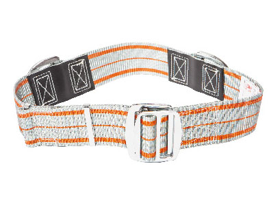 ·消防安全腰帶是一種緊扣于腰部的帶有必要金屬零件的織帶,用于承受人體重量以保護其安全,適用于消防員登梯作蚜口逃生自救。消防安全腰帶帶長連續(xù)可調,由織帶、內帶扣、外帶扣、環(huán)扣和兩個拉環(huán)等零部件構成。消防安全腰帶的設計負荷為1.33N,其質量不超過o.85kg??棊橐徽?,無接縫,其寬度為{70±1)mm。具有靜負荷性能、抗沖擊性能、耐高溫性能以及金屬零件的耐腐蝕性能。