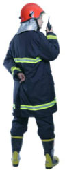滿足現(xiàn)行GA10-2014標準。藏藍色,產(chǎn)品由表面層、防水透氣層、隔熱層、舒適層四層結構組成。重量2.807kg。具備阻燃、防水、透氣、隔熱、耐染、防靜電和標識強等性能。整體熱防護性能TPP值:35 cal/cm2。外層:使用XT3900/PMIA三合一對位芳綸和間位芳綸混紡的芳綸材料,外層斷裂強力經(jīng)向1384N、緯向1061N,撕破強力經(jīng)向236.9N、緯向167.5N。防水透氣層為芳綸氈覆合PTFE膜,洗滌25次后拒油達4級。隔熱層:隔熱層為芳綸水刺氈。舒適層為50%芳綸與50%阻燃粘膠混紡材料。防水透氣層:為優(yōu)質PTFE薄膜。耐靜水壓大于50000Pa,水蒸氣透過量5621g/㎡.24h,熱穩(wěn)定性能經(jīng)2600C,5分鐘處理后收縮率為1.0%。各項性能指標符合GA10-2014《消防員滅火防護服》標準,每套均有國家認可的唯一強檢標志,并經(jīng)國家消防裝備質檢中心檢測通過的合格產(chǎn)品。產(chǎn)品提供檢驗報告和3C認證。